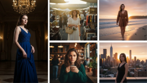 - The more descriptive the prompt (lighting, pose, mood, outfit, background), the better the output.