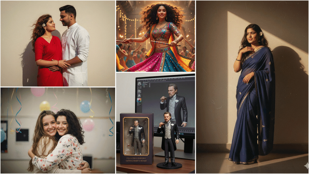 Indian cultural festival edits are now viral not only in India but worldwide. People are creating virtual photoshoots for upcoming festivals like Navratri, Diwali, Durga Puja, and Garba looks. The prompts below cover every trending festival style you can try on yourself.